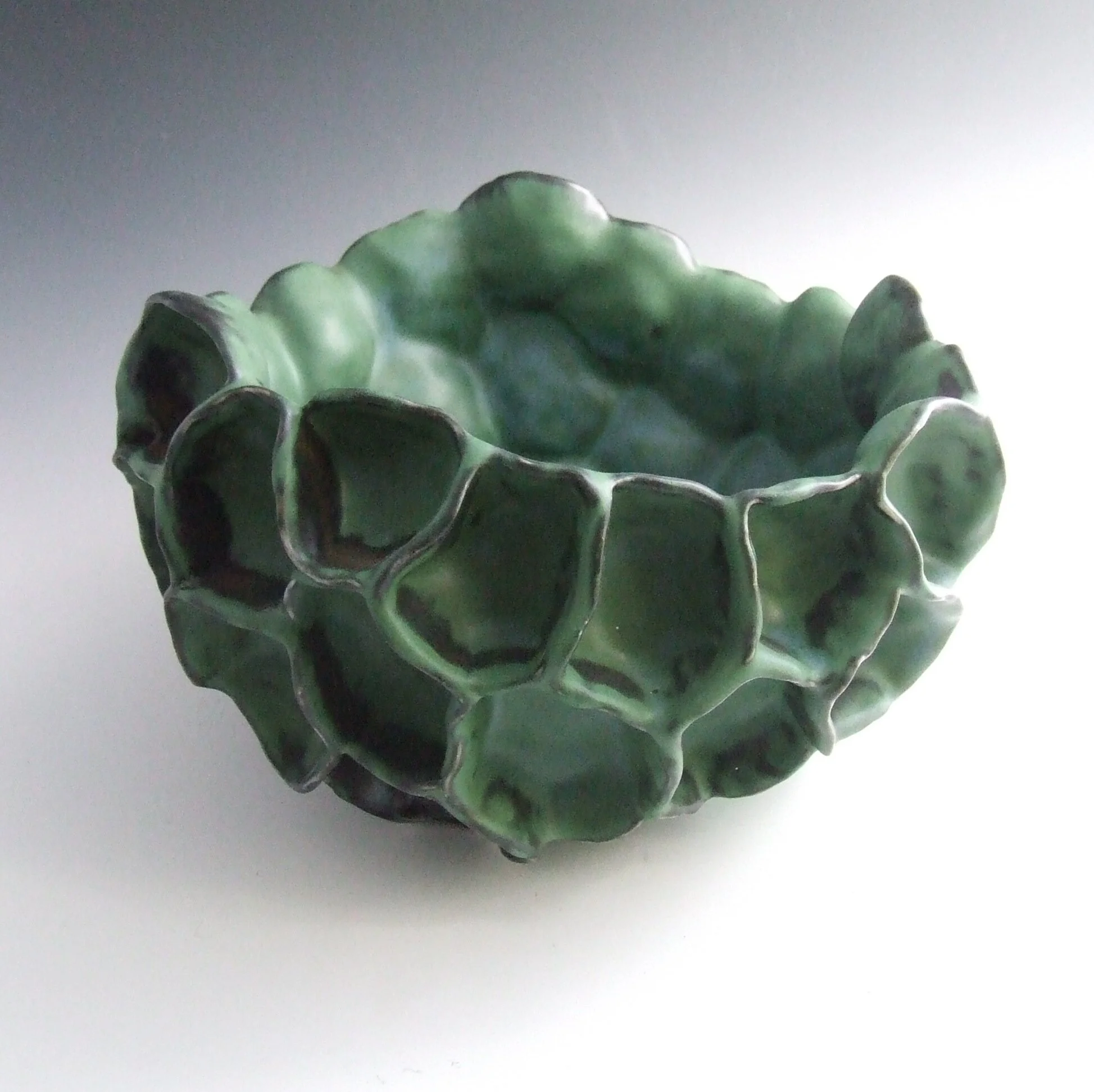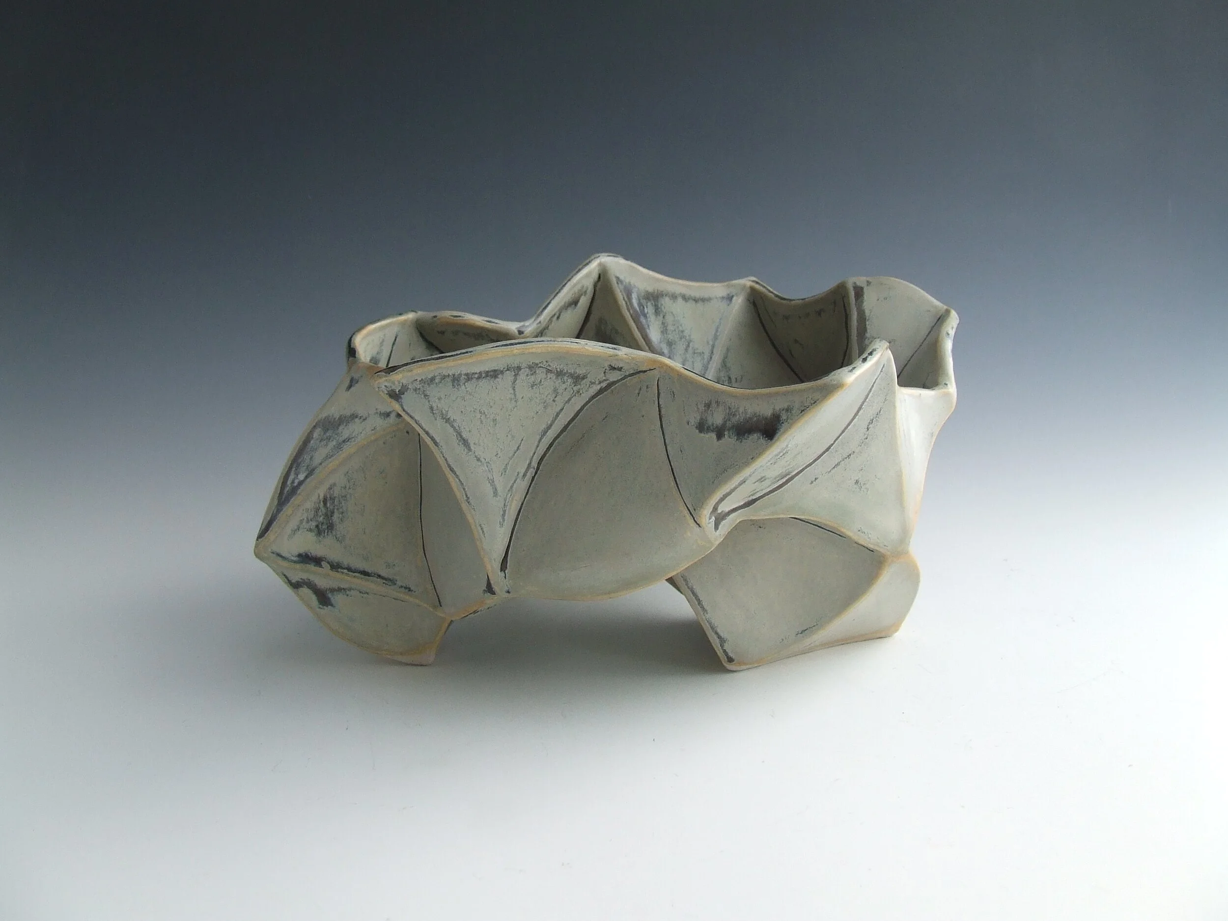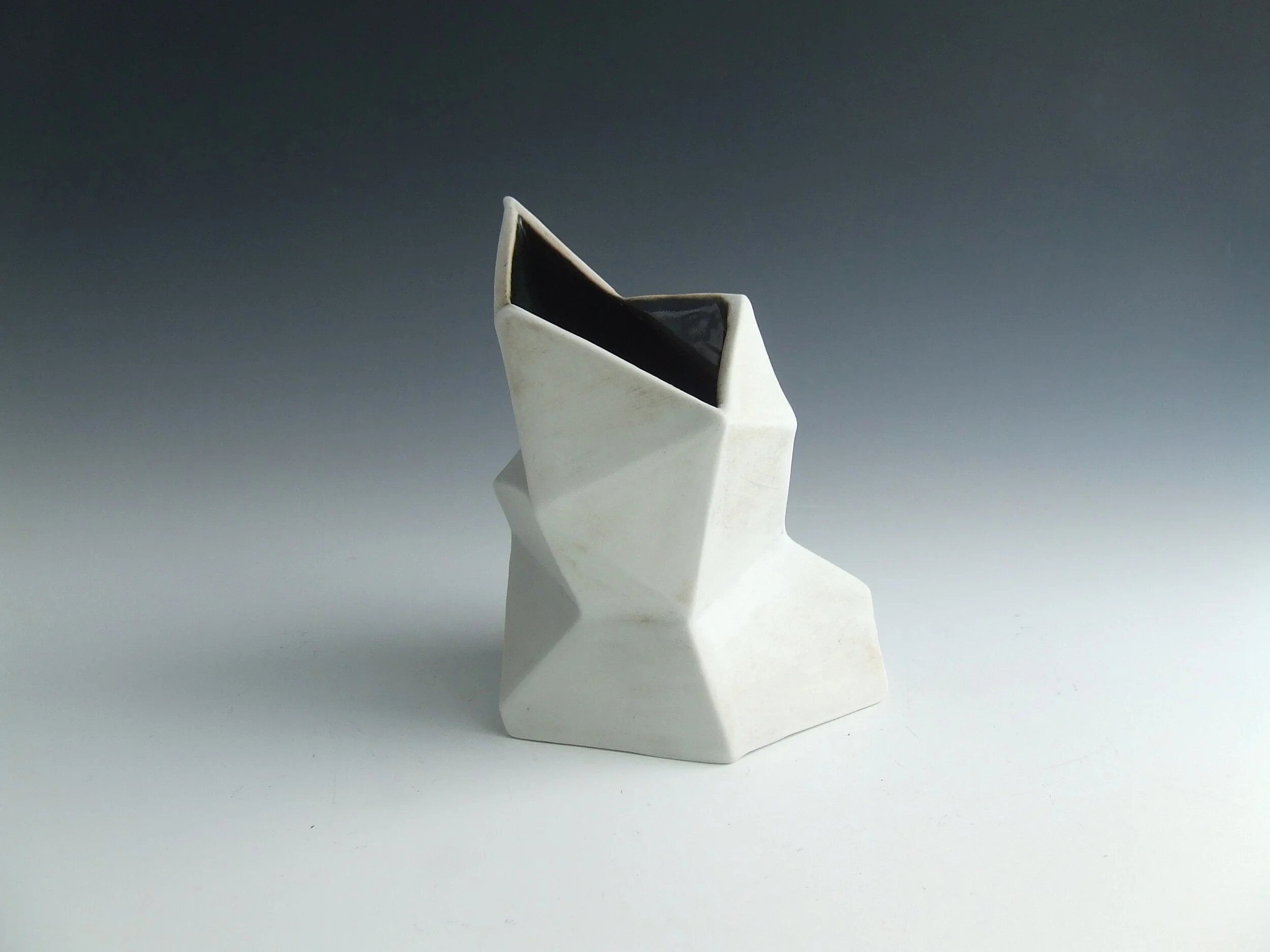 Black glazed interior, unglazed exterior porcelain with highlighted surface texture.